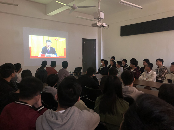 上午10:00,会议室座无虚席,同学们早早坐在大屏幕投影前等待。当雄壮的国歌响起,师生们自发起立,齐唱国歌;当习近平总书记说道:“历史深刻表明,只要中国人民和中华民族勇于为改变自己的命运而奋斗牺牲,我们的国家就一定能够走向富强,我们的民族就一定能够实现伟大复兴!”,同学们鼓起了热烈的掌声;聆听到习近平总书记说:“在我们党领导人民进行革命、建设、改革的伟大历史进程中,更是青年英雄辈出”,师生们无不为之动容,并致以深深的敬意……大会进程中,师生们一次次被习近平总书记深切寄语打动,频频鼓掌。
