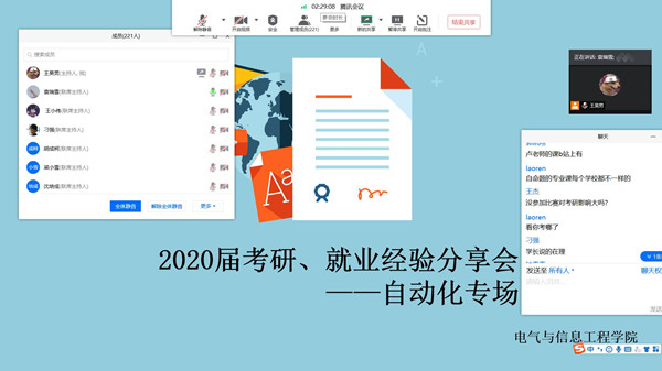 为更好激励在校学生拼搏奋进,6月17日至19日,色情卡通 成功举办3场2020届优秀毕业生考研就业经验分享会,21名优秀毕业生受邀通过腾讯会议系统,分别在电气工程、自动化、电子通信及智能控制等3个专场在线分享了考研就业经验及感悟。以大三学生为主,学院700余名同学积极参加了在线聆听和交流。