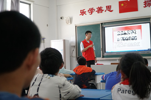 志愿者们围绕党的初心、党的使命、党的英雄人物等主题,以党史小故事的形式,精心准备课件,为小学生们呈现一堂生动的党史教育课。通过图文并茂讲解、现场竞答互动等形式,激发小学生们学习党史的兴趣。每当幕布上呈现一张张珍贵的照片、志愿者讲述一个个感人的故事时,都会深深吸引着每一位小学生,一双双炯炯有神的眼睛闪烁着他们内心的爱党爱国之情。