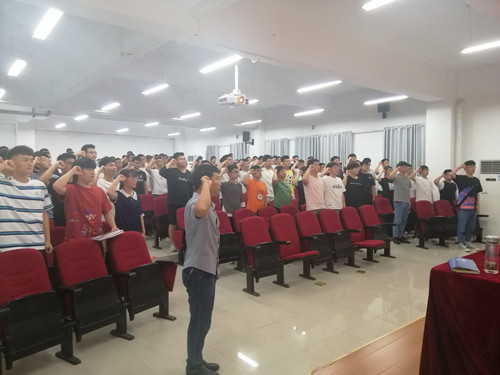 活动在雄壮的国歌声中拉开序幕。学院党委副书记徐泽绵带领全体党员重温入党誓词。