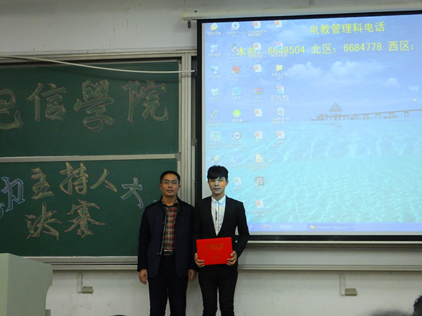 最终,通过对语言功底、舞台形象、创意体现等多方面的综合打分,自动化15-5班方逸仙获得一等奖,智控15-2班布赫等4人获得二等奖,电子15-2班王敏等6人获得三等奖,电气15-3班韦云豪获得最佳人气奖,自动化15-5班张建丰获得最佳特色奖,通信15-1班华善善获得最佳气质奖。