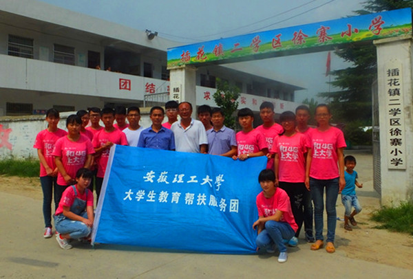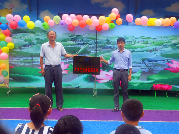 7月16日上午,学院大学生社会实践基地挂牌仪式在阜阳颍东区插花镇徐寨小学举行。学院团委副书记孔海棠、指导老师衡连伟、学院16名青年志愿者及部分小学师生参加。