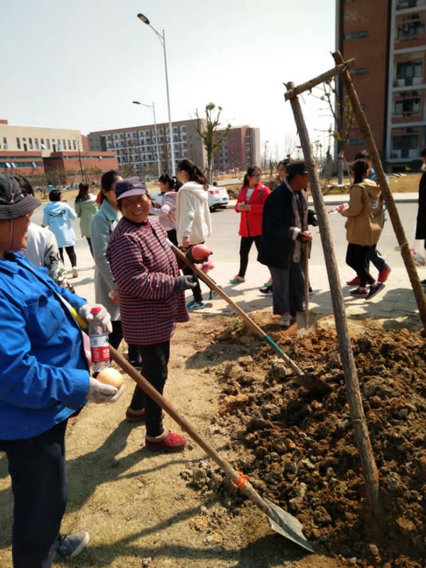 为学校植绿工人送去水和苹果(摄影:赵埕萱)