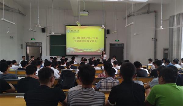 交流会上,5名考取研究生和1名保研同学分别从自身考研经历出发,围绕“我为什么要考研”、“如何选择目标院校和专业”、“如何制订考研复习计划”“研究生复试需要注意的问题”等各方面,为学弟学妹们分享了考研和保研的心得经验及考研各科的复习方法,鼓励学弟学妹们结合自身实际合理安排时间、调整心态、坚定考研信念不动摇。4名就业的学生代表根据自己的求职经验和实习经历,从专业素养、实践经历、简历制作、面试技巧、求职心态等方面给大家作了分享,告诫学弟学妹们重视暑期实践,善于捕捉就业信息,利用在校时间继续夯实专业基础,提高专业技能,增强自身就业竞争力。交流互动环节,2014级学生就自己内心的一些困惑和问题向学长学姐门进行了提问,学长学姐们的细致解答赢得了阵阵掌声。