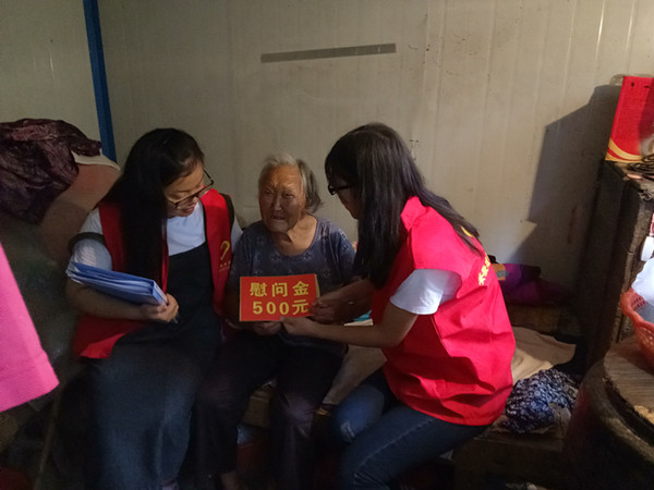 在来临泉社会实践之前,学院团委开展了缴纳“特殊团费”活动,为贫困村儿童、特困户,募集特殊团费7500元。此次大学生实践团将募集到的7500元特殊团费作为扶贫慰金亲手送到15户特困家庭手中。