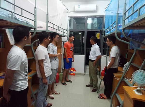 在返校学生宿舍,师生一起交流假期见闻与感想,同时徐关怀一行还对宿舍卫生、安全状况进行排查,对学生进行安全文明教育,既了解学生需求,又增进了师生感情,为学院学生工作可持续发展奠定了坚实基础。