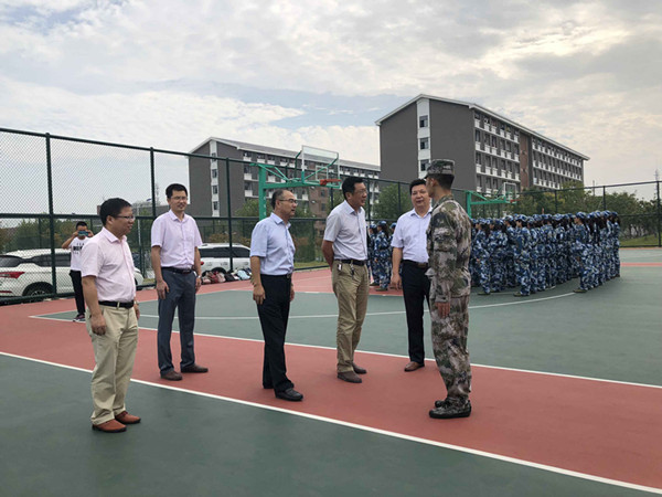 学院领导首先向辛勤工作的军训教官表示衷心感谢,详细了解军训工作整体情况,观摩受训学生正在进行的队列、行进等训练活动,向认真参训的新生同学表示赞扬。