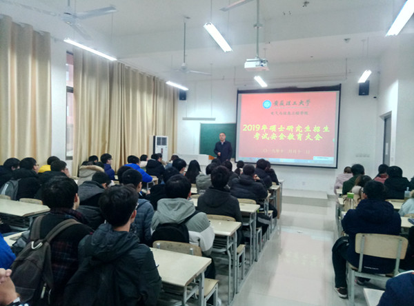 11月12日下午,学院在学院C103教室召开硕士研究考试安全教育会,会议由学院执行院长周孟然主持,毕业班辅导员和70余名考研学生代表参加了会议。