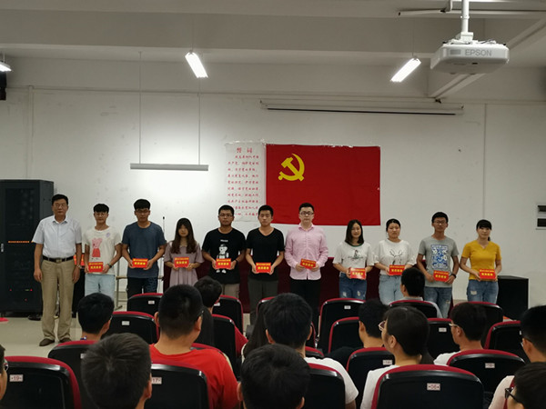 6月21日下午,学院在励行楼B112报告厅举办新发展党员宣誓暨党员宿舍、党员床铺授牌活动。学院党委书记夏邦权、党委副书记张亚参加活动。