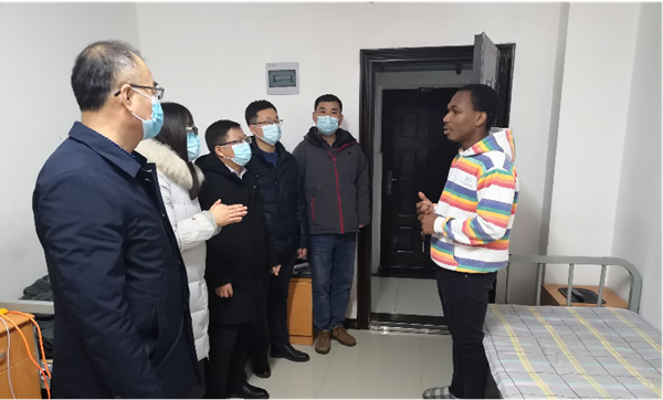 为充分了解留学生在校情况,进一步做好寒假期间留学生安全教育工作。1月22日上午,学院执行院长周孟然、副院长欧阳名三和副院长曹珍贯带领各年级留学生指导老师,深入研究生公寓走访留学生宿舍,看望和慰问了学院留学生,为他们送去了慰问和祝福。