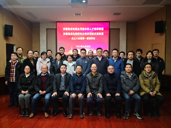 1月28日下午,安徽集成电路应用型本科人才培养联盟暨安徽集成电路研究生培养创新发展联盟成立大会在合肥召开,来自全省中国科学技术大学、合肥工业大学、安徽大学、色情卡通 、安徽工程大学等高校的与集成电路相关专业近30位的学者参加了会议,我院执行院长周孟然教授受邀参加,并当选联盟第一届理事会副理事长。