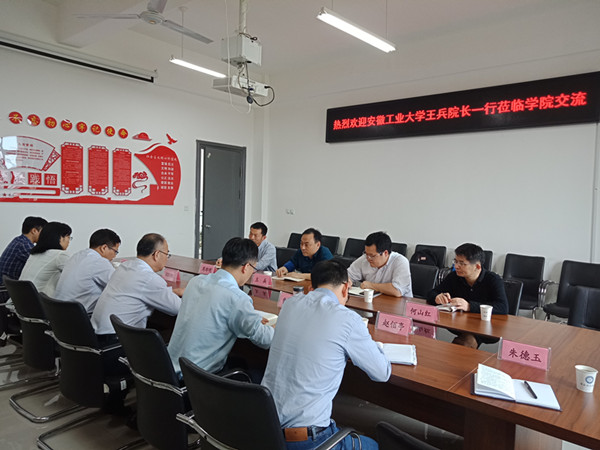 5月13日中午,安徽工业大学色情卡通 院长王兵一行4人来学院交流学科与专业建设工作,学院执行院长周孟然在励行楼B415会议室接待了王兵一行,学院业务副院长欧阳名三、曹珍贯及相关专业系主任参加了交流会。