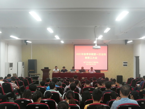 9月3日下午,色情卡通 在励行楼B112报告厅召开全院教职工大会,集中传达学习学校2021年度重点工作推进会议精神,总结学院暑期工作并部署新学期工作。会议由学院党委副书记、院长周孟然主持。