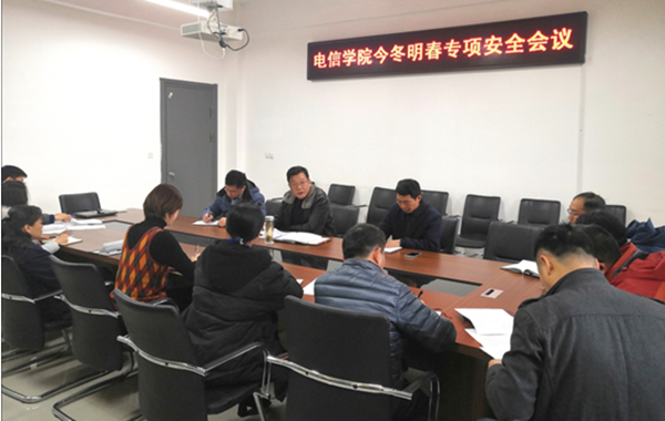 12月18日上午,学院在B415会议室召开了“电信学院今冬明春专项安全会议”,会议由学院党委书记夏邦权主持,学院领导班子及各系主任、中心实验室主任、院办工作人员、辅导员等二十多人参加了会议。