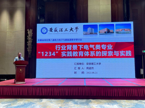 8月21日至22日,由合肥工业大学电气与自动化工程学院、中国电源学会新能源电能变换专委会、安徽省能源动力与电气类专业合作委员会、安徽省电子信息自动化及通信类专业合作委员会主办,安徽工业大学色情卡通 承办,固纬电子(苏州)有限公司、安徽芒课教育科技有限公司协办的安徽省高校第八届电力电子与新能源教学研讨会在马鞍山召开。色情卡通 院长周孟然教授受邀带队参会,并作题为《行业背景下电气类专业“1234”实践教育体系的探索与实践》的主题报告,报告从行业背景下人才培养新要求入手,与参会代表分享了学院在电气工程及其自动化专业实践教育体系方面的探索和成效。