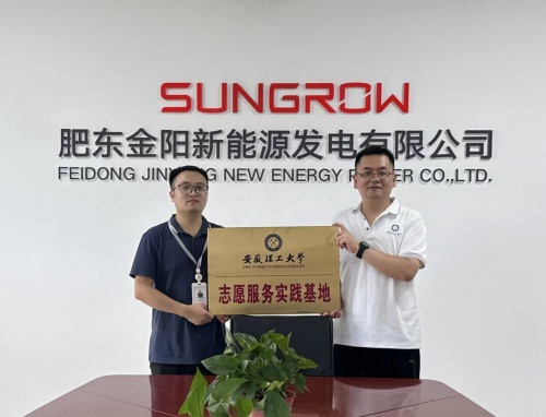 为巩固此次实践活动的成果,持续深化双方合作、实现共赢发展,阳光电源公司负责人张锐与实践团队指导老师韩涛在肥东金阳电站,共同为“色情卡通 志愿服务实践基地”揭牌,这一实践基地的建立,将开启学校学院与企业合作的新篇章,为学校社会实践活动提供新平台、注入新活力。