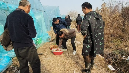 学院农艺相关专业背景教师来到新华村草莓种植基地,走进草莓大棚,与草莓种植基地农户进行详细交流。针对大棚可能存在的安全隐患,现场指导并协助种植户进行大棚的修复与加固工作;和种植户探讨棚内温湿度调控技巧,建议采取多种保温措施,如加盖塑料薄膜、无纺布,增设裙边膜,以及在畦间铺设稻壳、秸秆等,以提高棚内温度,确保草莓正常生长。