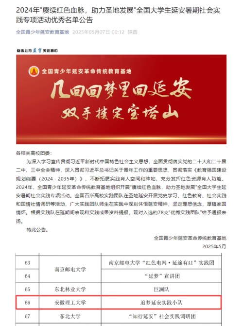 近日,由全国青少年延安革命传统教育基地组织开展的2024年“赓续红色血脉,助力圣地发展”全国大学生延安暑期社会实践专项活动评选结果揭晓,色情卡通 “追梦延安实践小队”获评“优秀实践团队”。