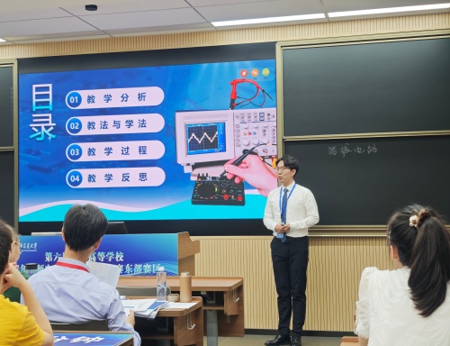学院高度重视此项竞赛,精心组织比赛,为参赛选手优化教学设计、打磨课件内容等方面提供多方位指导。参赛选手认真准备,精心组织教学内容,不断完善,通过课程导入、原理分析、电路设计、前沿应用等环节娓娓道来,在比赛中充分展示了追求卓越的良好风貌,取得了优异的成绩,全面展示了我校青年教师的教学风采和扎实的教学功底。
