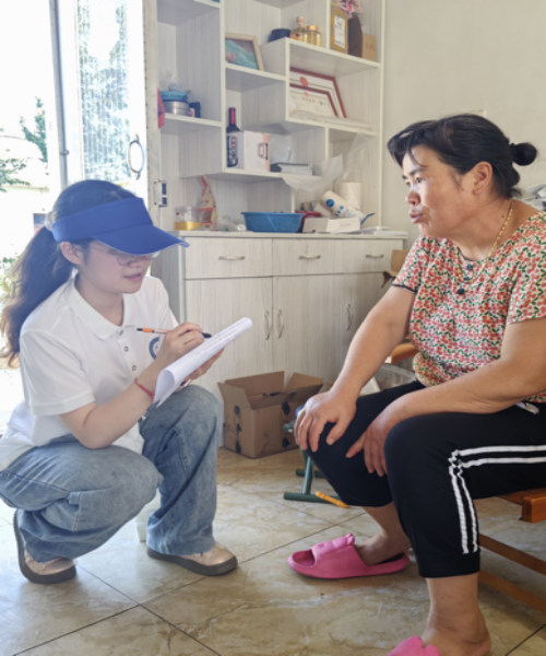 秉持知行合一的理念,实践队将目光投向湿地周边的社区,走进紧邻湿地的潘村开展入户走访与问卷调查。实践队员分组行动,与不同年龄、职业的村民深入交流,了解他们对湿地环境变化的感受、生态保护态度以及对未来发展的期望。
