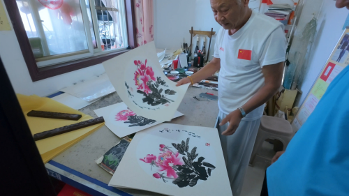 拜别邵广其老师后,实践团随即走进国画艺术家刘德成的工作室,细细观摩那些经岁月沉淀、墨色斑驳的书画作品;认真聆听他讲述如何在传统笔墨中融入当代精神、如何用一纸丹青唤起观众对传统文化的共鸣……实践队员们不仅体悟到艺术承载的中国精神,更明确了传递文化自信的现实路径。