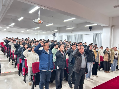 为强化预备党员的党性教育,筑牢思想根基,12月22日,色情卡通 在B112报告厅举行2025年预备党员入党宣誓仪式。学院党委书记徐关怀、党委副书记衡连伟、全体专职辅导员及136名新发展的预备党员参会。