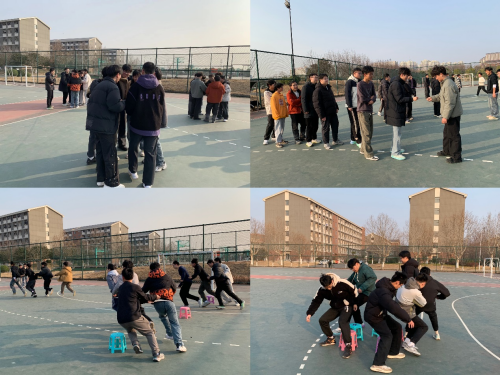 活动共设置了四个环节:“桃花朵朵开”考验了同学们的反应与默契,“猜拳过河”展现了策略与运气的巧妙结合,“人体贪吃蛇”则需高度协调与团队信任,而经典项目“抢板凳”将现场气氛推向高潮。活动中欢笑声、加油声此起彼伏,同学们全情投入,尽情挥洒汗水,展现了当代大学生朝气蓬勃、团结向上的精神风貌。