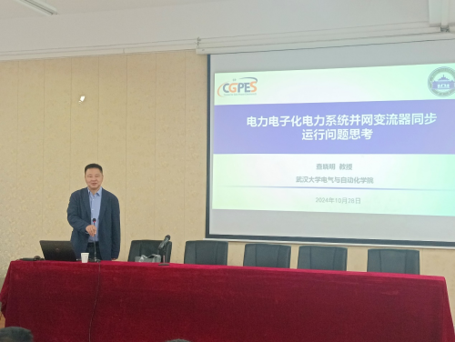 查晓明教授在新能源快速发展的背景下,从电力电子控制作用的认识、新能源发电系统同步稳定性构建机制等几个方面向师生们详细阐述了电力电子在电力系统中存在的问题、相关的应用及未来发展方向。